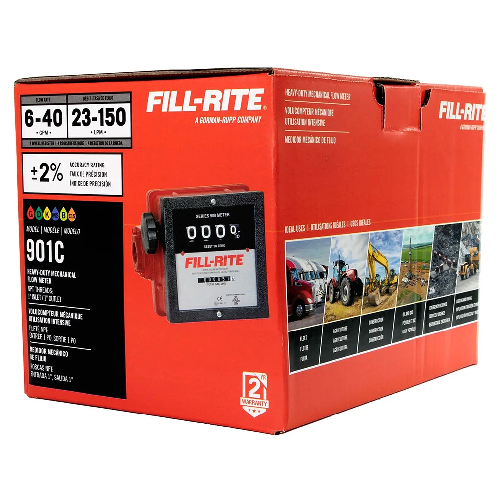 The Fill-Rite 901C Mechanical Fuel Transfer Meter delivers dependable accuracy for high-volume fueling. Built with rugged cast aluminum, this meter is designed for diesel, gasoline, kerosene, and more. Its nutating disc technology ensures durability, even when exposed to debris in fuel.
