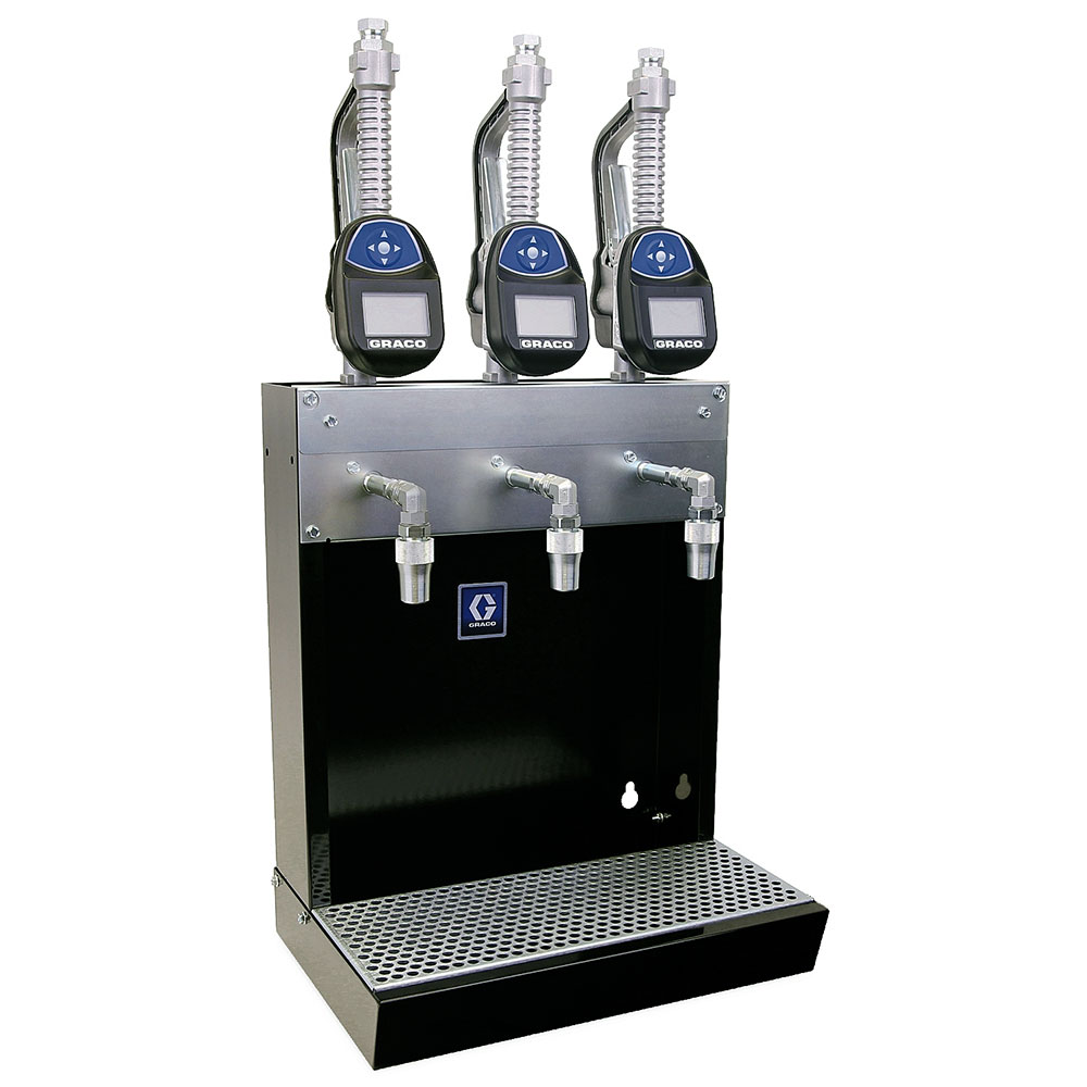 The Graco Pulse® Oil Bar Console (25D121) offers a durable, enclosed solution for efficient oil dispensing. Designed for technicians, it ensures safe, organized, and precise fluid management.
