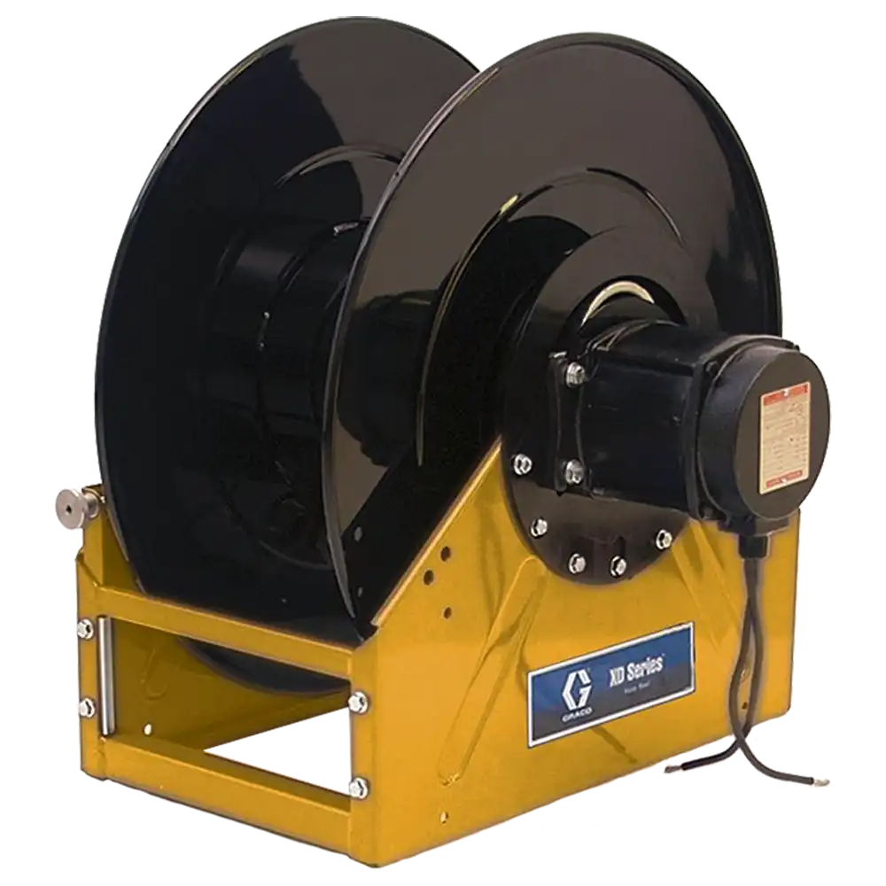 The Graco XD70 Diesel Fuel/WOE Reel, Part 24T117, offers safe and durable hose handling for heavy-duty fueling and waste oil evacuation applications. Its rugged frame and motorless design deliver long-lasting reliability in demanding work environments.