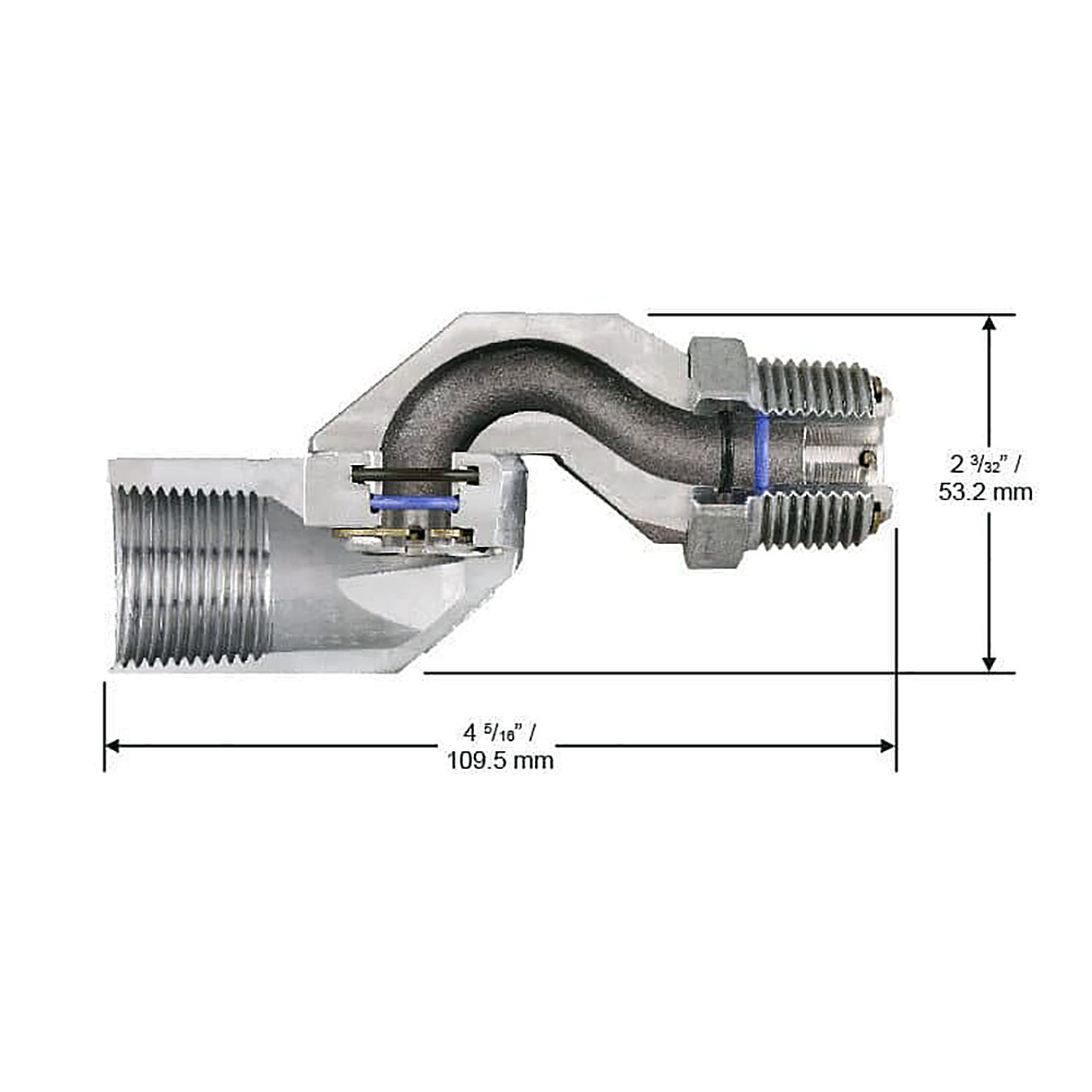 This swivel is compatible with unleaded fuels, diesel, and Ethanol blends up to E10. Its laminar flow design promotes high flow rates, ensuring efficiency with every use. Additionally, double O‑ring seals enhance longevity and maintain flexibility even in extreme cold, operating effectively at temperatures as low as ‑40°F.