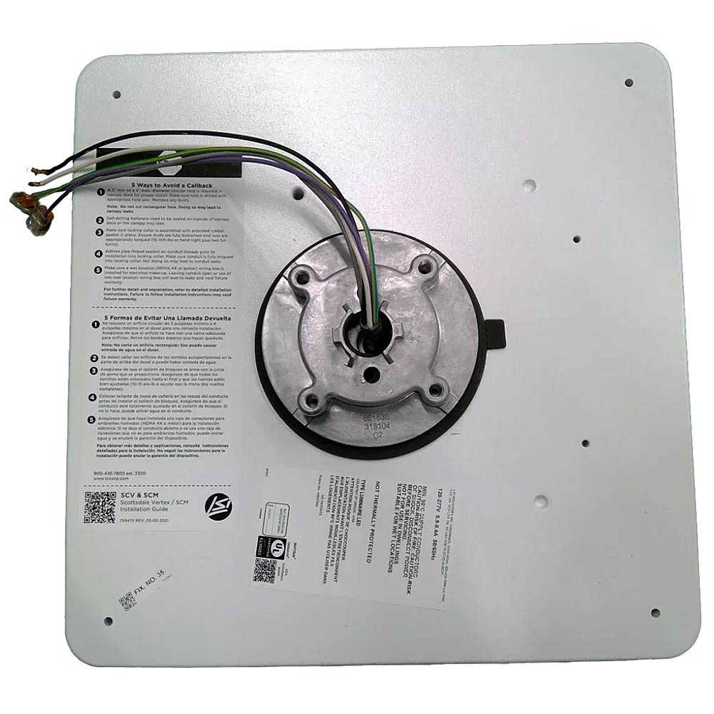 Engineered for long-term durability, the light features a low-profile die-cast aluminum housing with under-canopy access. It installs easily into 12” or 16” deck pans and supports maintenance from below. The LSI Vertex LED canopy light is IP66-rated to withstand dust, moisture, and harsh weather.